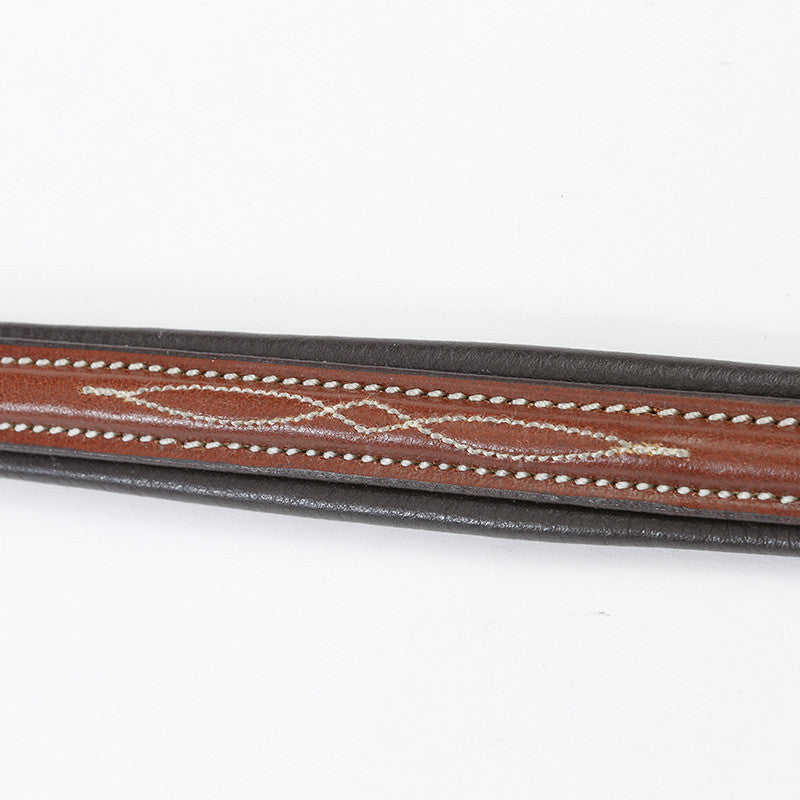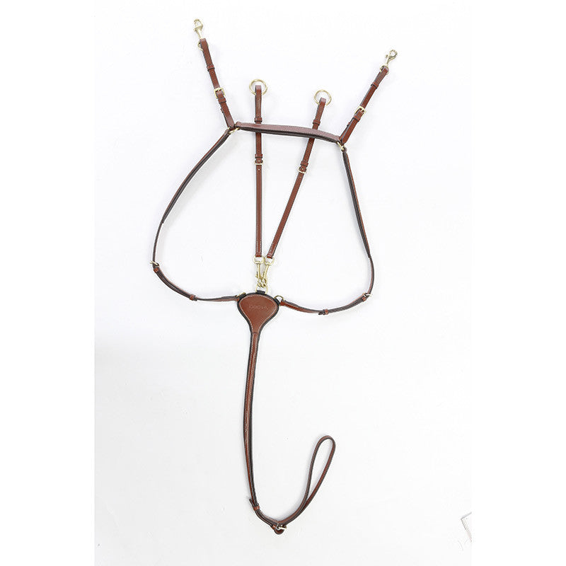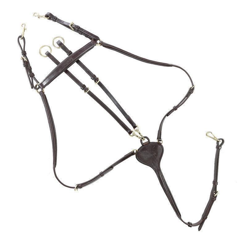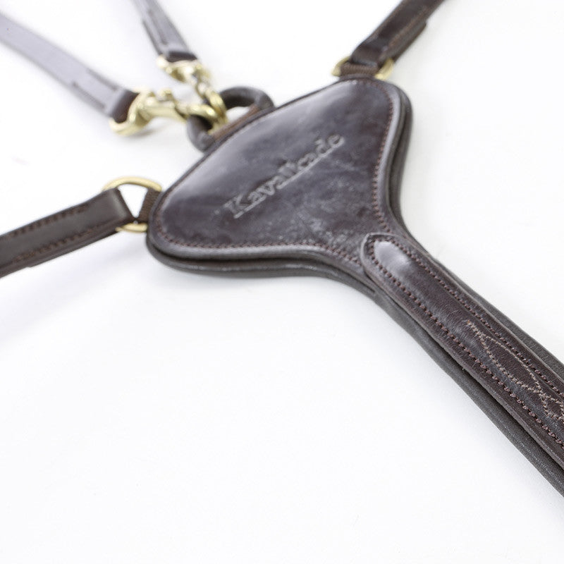 Martingalgabel. Mit Ziernähten. Mehrfach verstellbar und weich gepolstert. Ohne Elastzonen. Passend zu den Trensen „Lorenz“ ).