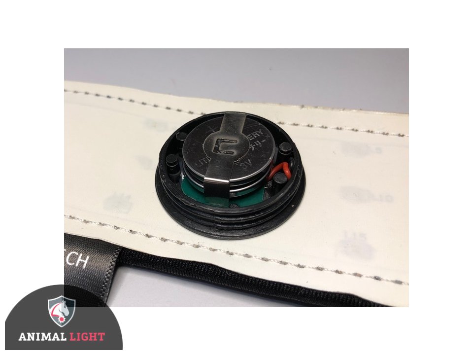 4x Leucht-Gamasche inkl. 8 eingesetzte Knopfzellenbatterien sowie 8 Ersatzbatterien.