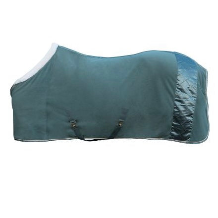 Die atmungsaktive Abschwitzdecke Basil hat eine optimale Schweißaufnahmefähigkeit und verfügt über Schweifriemen, verstell- und abnehmbare Kreuzgurte, sowie Metallverschlüsse. Die Rautensteppung findet sich in Form einer noblen Bordüre wieder, Glitzersteine und Kordeln zieren als besonderen Eyecatcher die Abschwitzdecke