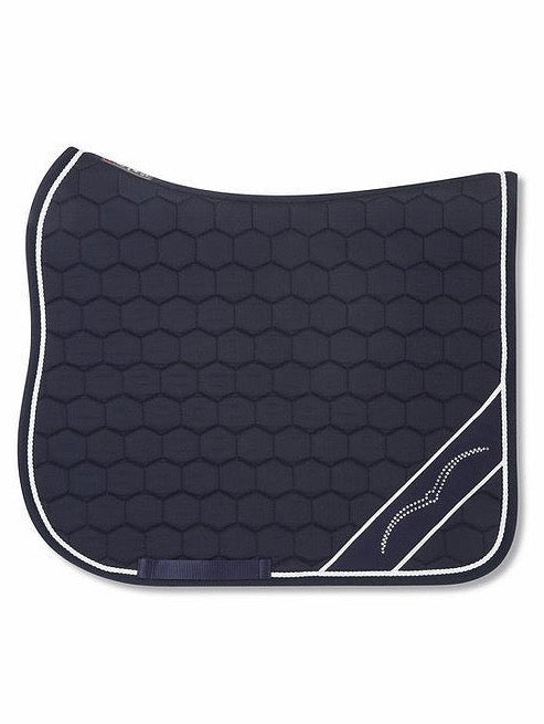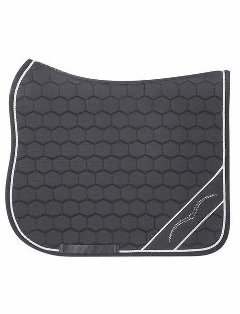 Die Dressurschabracke Wato von Animo ist eine besonders hochwertige Schabracke in edler Optik. Sie besitzt eine kleine Steppung und eine Swarovski Applikation in Form eines Animo-Logos an der Einfassung. Die besondere wabenförmige Steppung, die ergonomische Form und die außergewöhnliche Liebe zum Detail machen die Schabracke einzigartig. Das weiche und atmungsaktive Material transportiert die Feuchtigkeit am Rücken des Pferdes optimal ab. Außerdem bietet diese Schabracke dank der anatomisch geschnittenen Form mehr Entlastung im Bereich des Widerrists.