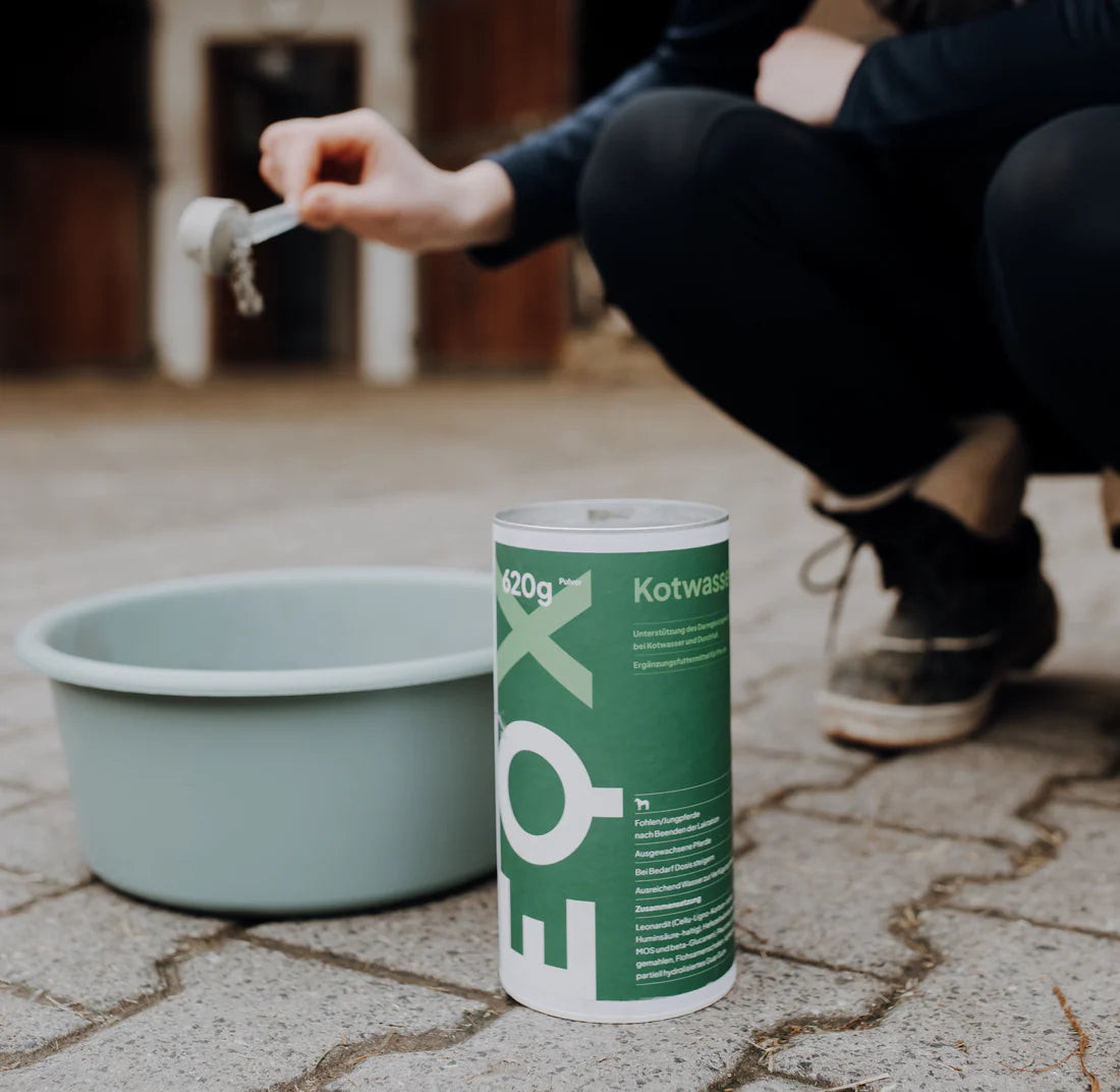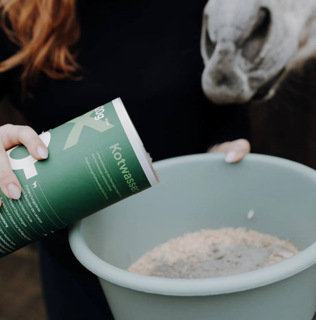 EQX Anti-Kotwasser ist ein natürliches Ergänzungsfutter, das die Darmfunktion deines Pferdes unterstützt, die Verdauung stabilisiert und bei folgenden Problemen hilft: