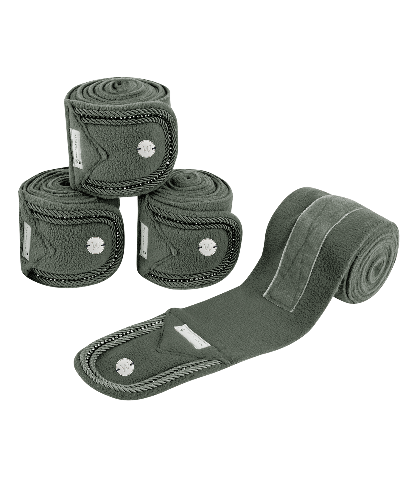 Hochwertige Fleecebandagen aus 380g/m² Antipilling Fleece, mit einem schimmernden Strassband zwischen zwei Zierkordeln und silberfarbenem Metallplättchen. Passend zu unserer Nepal Kollektion