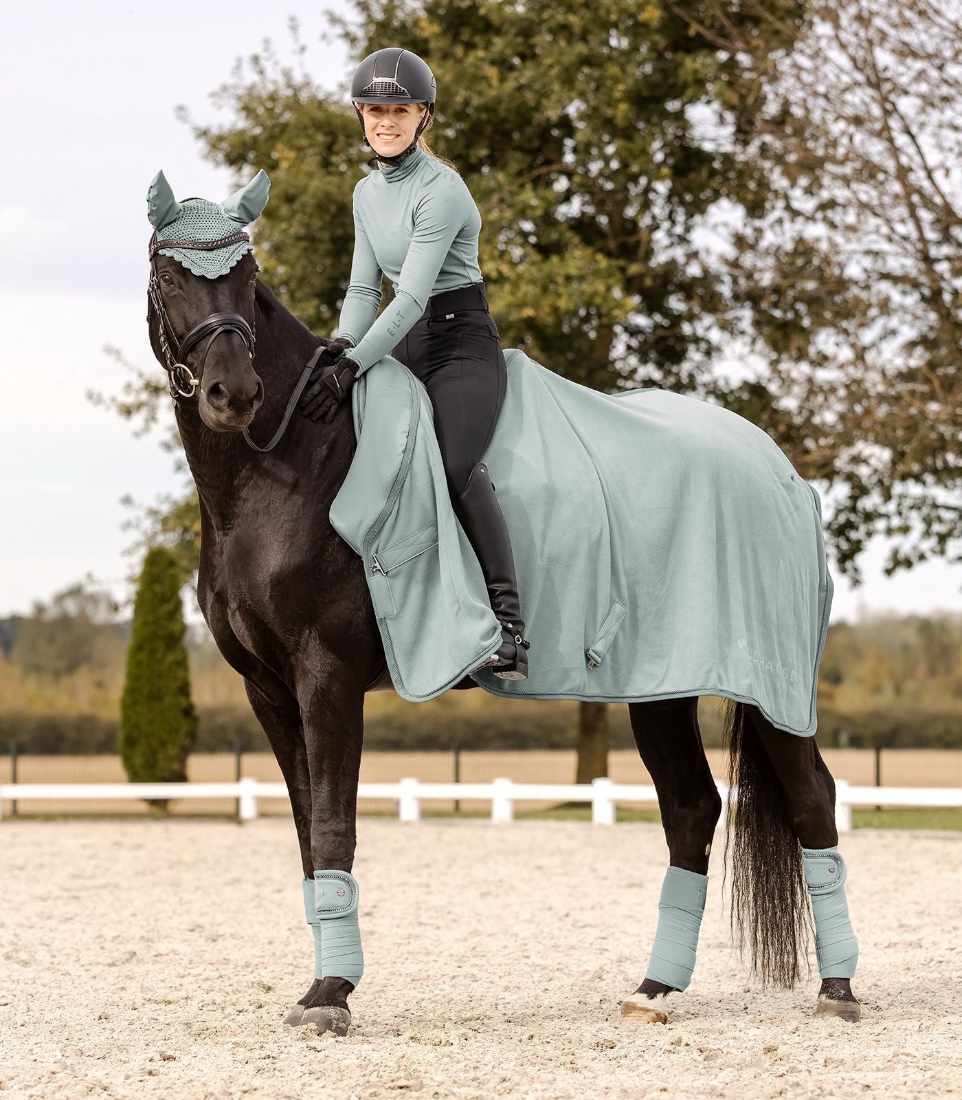 Hochwertige Fleecebandagen aus 380g/m² Antipilling Fleece, mit einem schimmernden Strassband zwischen zwei Zierkordeln und silberfarbenem Metallplättchen. Passend zu unserer Nepal Kollektion