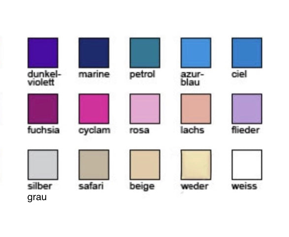 Möchtest du die Schriftfarbe gleich wie die Einfassung oder Kordelfarbe? Dann dies so notieren. Wir suchen dann für dich die passende Farbe aus.