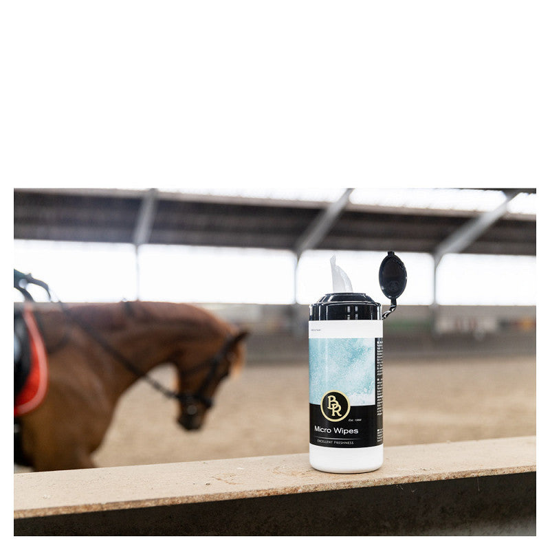 Die BR Micro Wipes sind erfrischende, feuchte Reinigungstücher, die immer nützlich sind um griffbereit zu haben. Ideal zum Reinigen von Gebissen, Trensen und Oberflächen in und um Ställe. Auch zum Händewaschen geeignet.