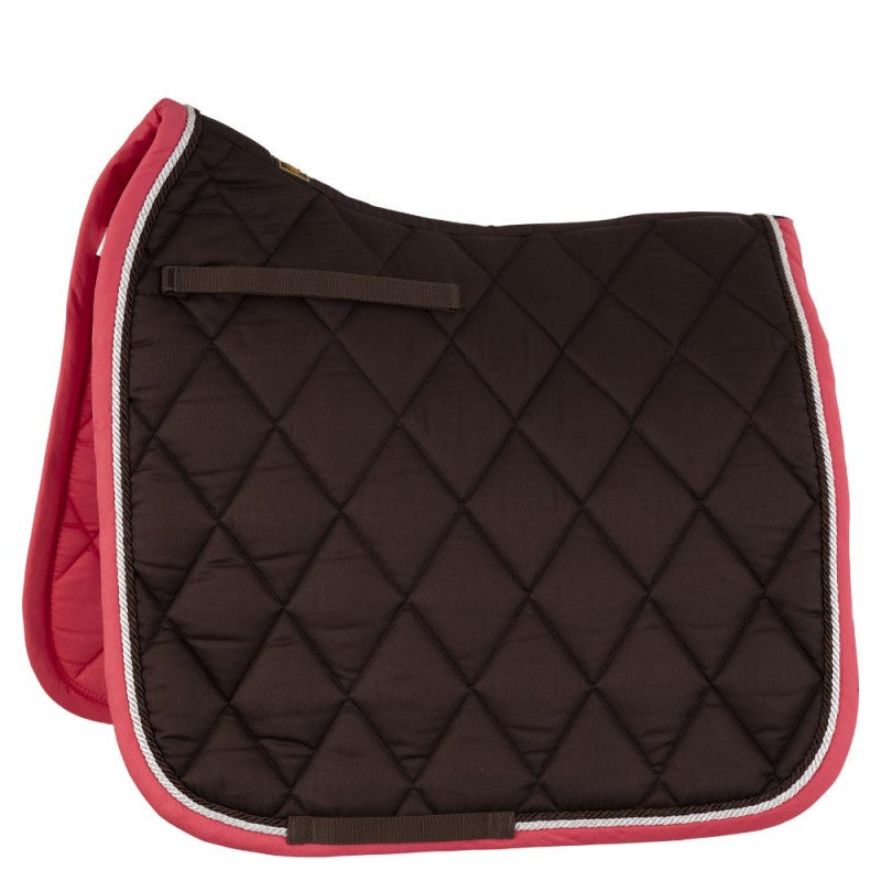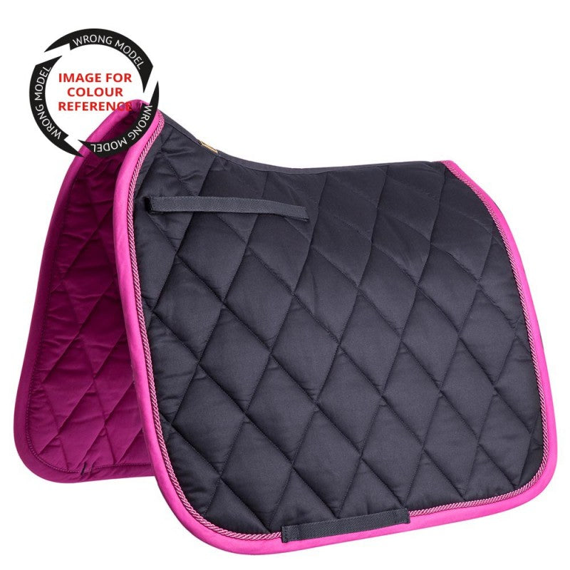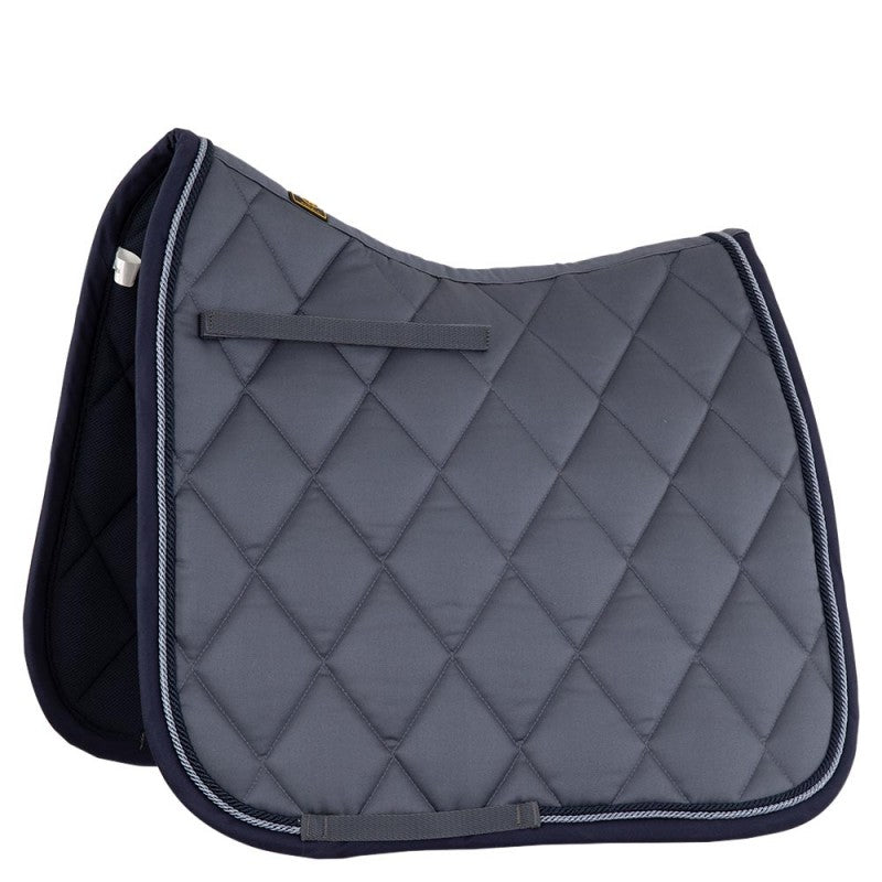 Die Schabracke ist mit zwei Zierkordeln dekoriert und es enthält eine Gurtstrupfenbefestigung mit Klettverschluss.