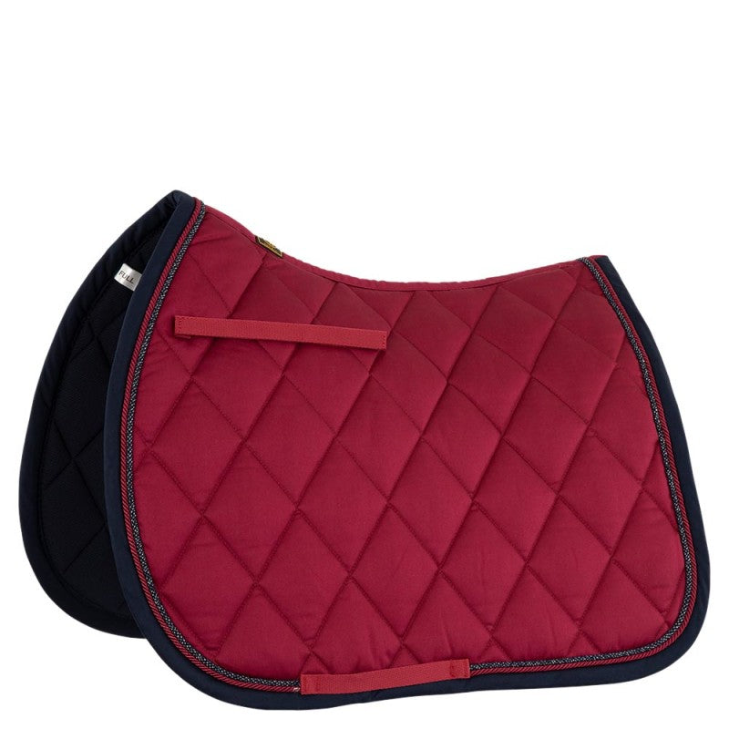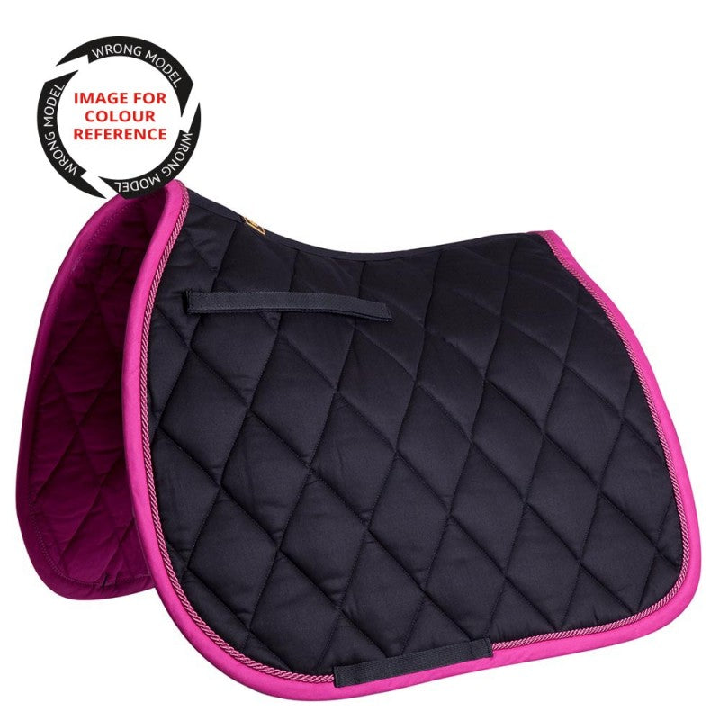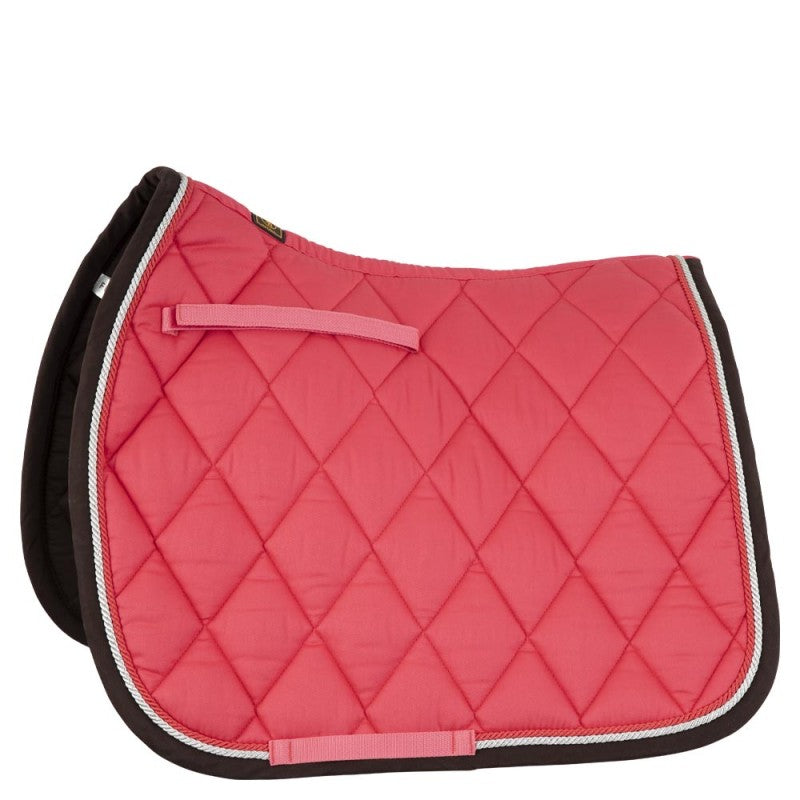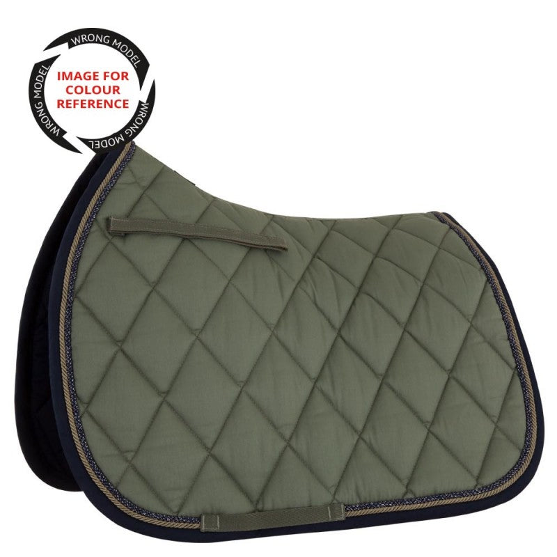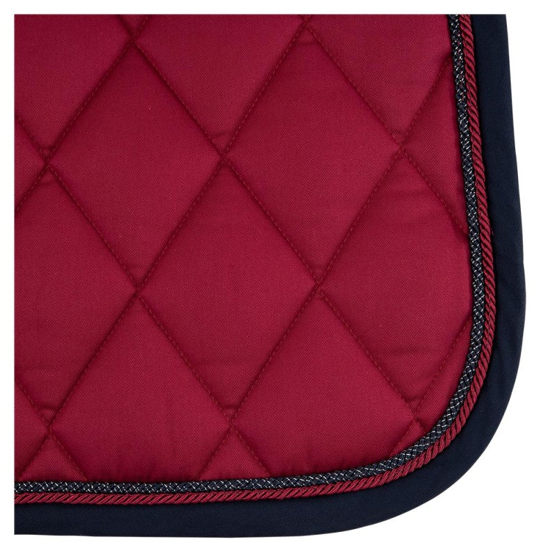 Die Schabracke ist mit zwei Zierkordeln dekoriert und es enthält eine Gurtstrupfenbefestigung mit Klettverschluss.