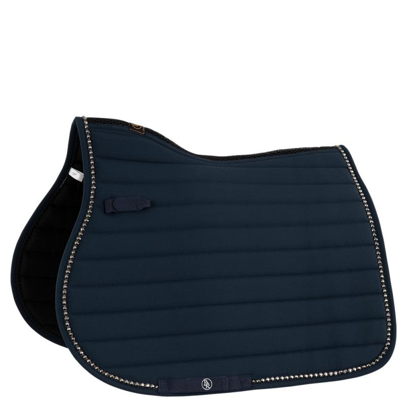 Diese luxuriöse, anatomisch geformte Wettkampf-Schabracke verfügt über ein feuchtigkeitsregulierendes Polyester-Airflow-Futter und eine Airflow-Rückennaht, um den Luftstrom zu fördern. Die Schabracke hat eine stoßdämpfende Füllung und ist mit eleganten Nieten versehen. Ausgestattet mit Gurtstrupfen- und Sattelgurtbefestigung mit Klettverschluss.