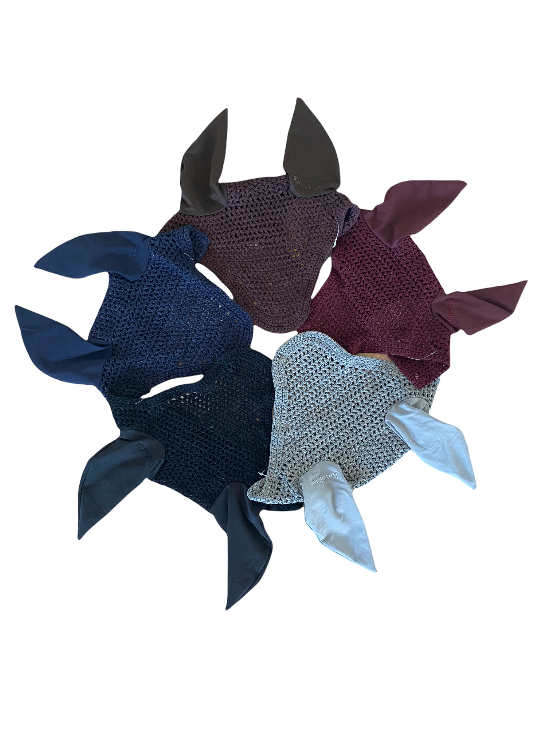 Von Hand hergestellte Fliegenhauben mit elastischen Ohren.