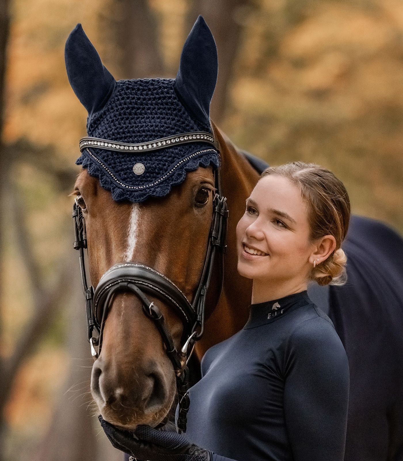 Hochwertige Fliegenohren mit elastischen Ohren, passend zu unserer Nepal Kollektion. Ein Metallplättchen sowie ein schimmerndes Strassband zwischen zwei tonalen Zierkordeln sorgen für einen eleganten Auftritt.