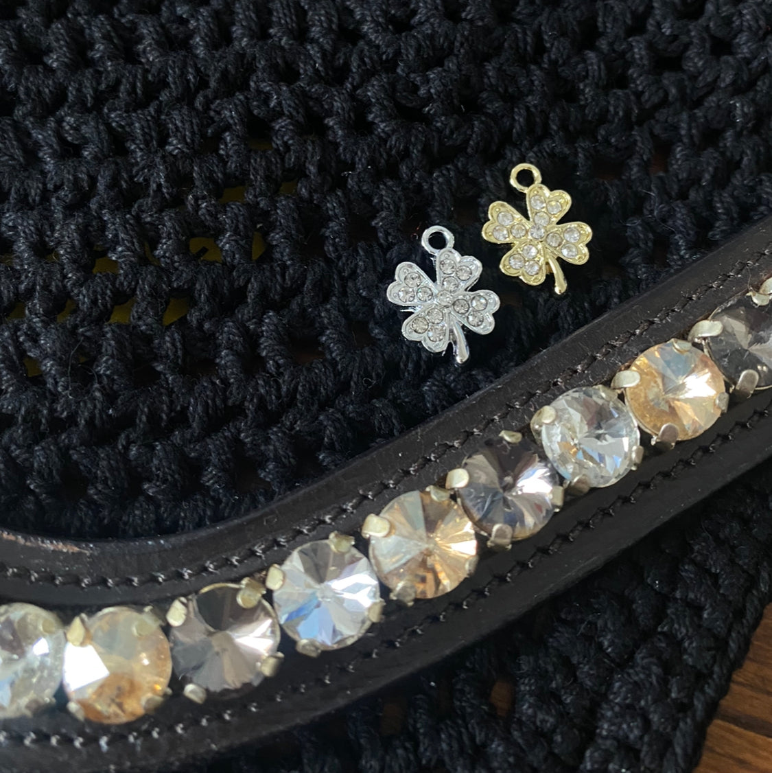 Süsses Kristallkleeblatt mit kleinen Kristallen verziert für an Zaum oder Vorderzeug.