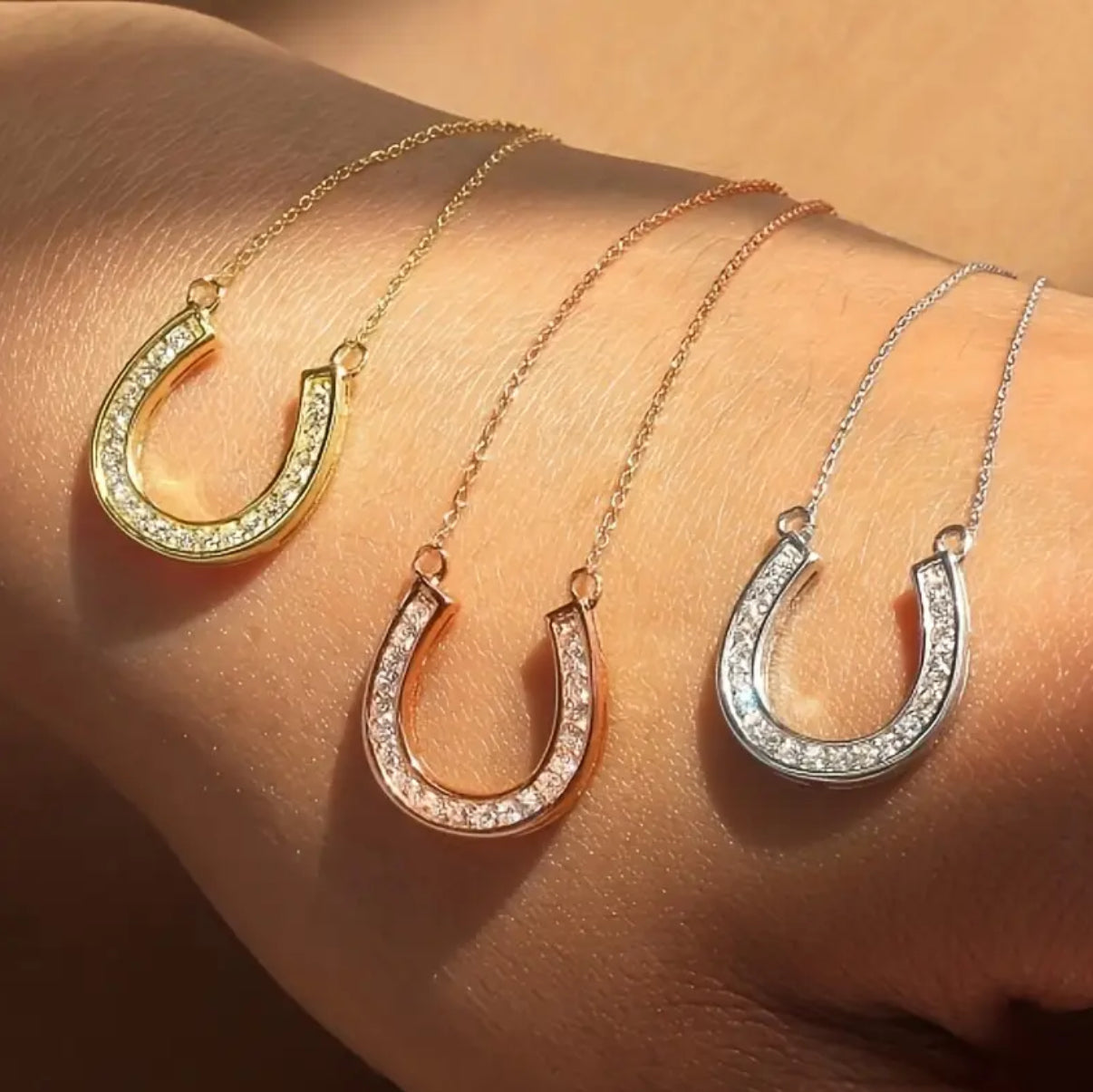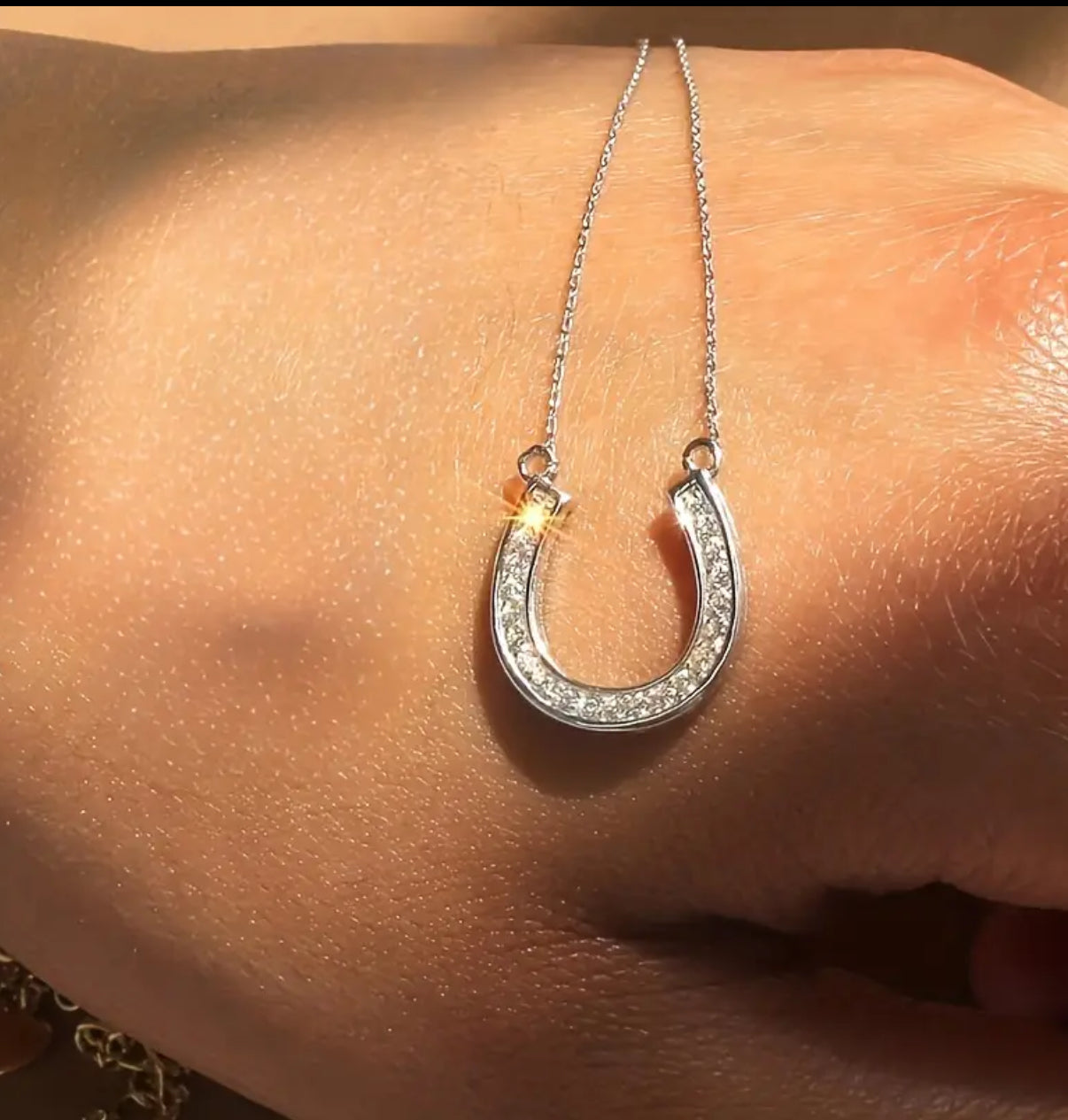Süsse Edelstahlhalskette mit Glitzer-Hufeisen.