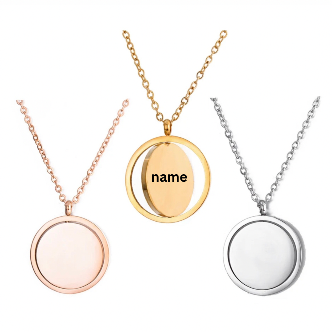 Wunderschöne Edelstahl Halskette die sich drehen lässt mit deiner Wunschgravur.