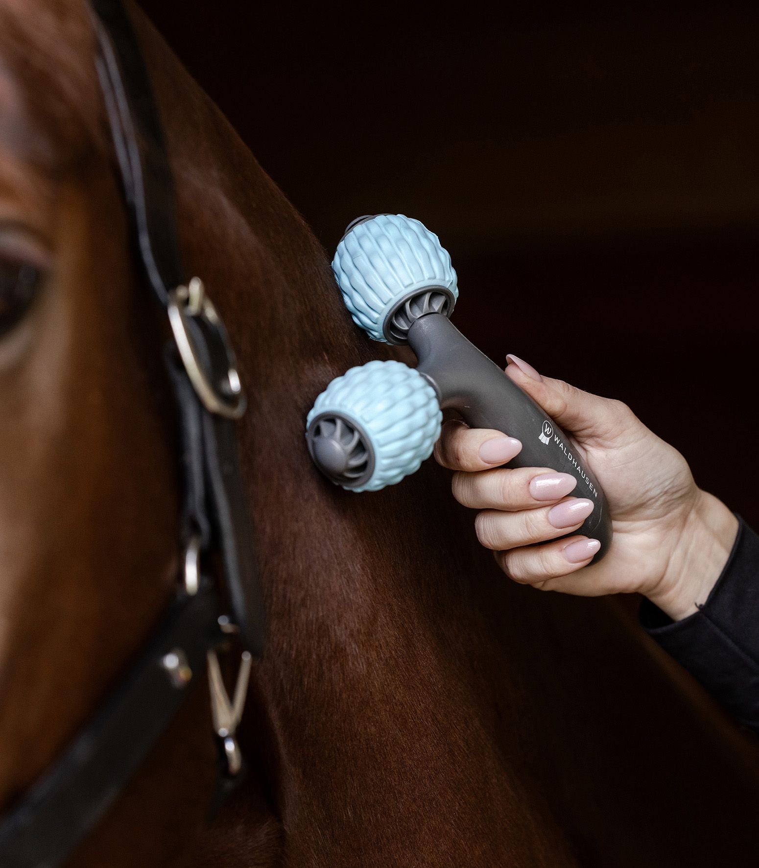 Die Waldhausen Health + Care Massageroller bieten eine einfache und effektive Möglichkeit, dem Pferd eine entspannende Massage zu schenken - ganz ohne Elektronik. Dank der speziellen Struktur der Rollen können gezielt Muskelpartien gelockert und Verspannungen gelindert werden. Der benutzerfreundliche Handgriff gewährleistet eine komfortable und sichere Anwendung, während die Massagerollen optimal für die weichen, großflächigen Körperbereiche des Pferdes geeignet sind. Insbesondere als Warm-up vor oder für die Regeneration nach intensiven Trainingseinheiten ist der Einsatz der Waldhausen Health + Care Massageroller eine wirksame Unterstützung zur Gesunderhaltung des Pferdes. Die Anwendung ist einfach, flexibel einsetzbar und ideal für eine beziehungsfördernde Zeit zwischen Pferd und Mensch.