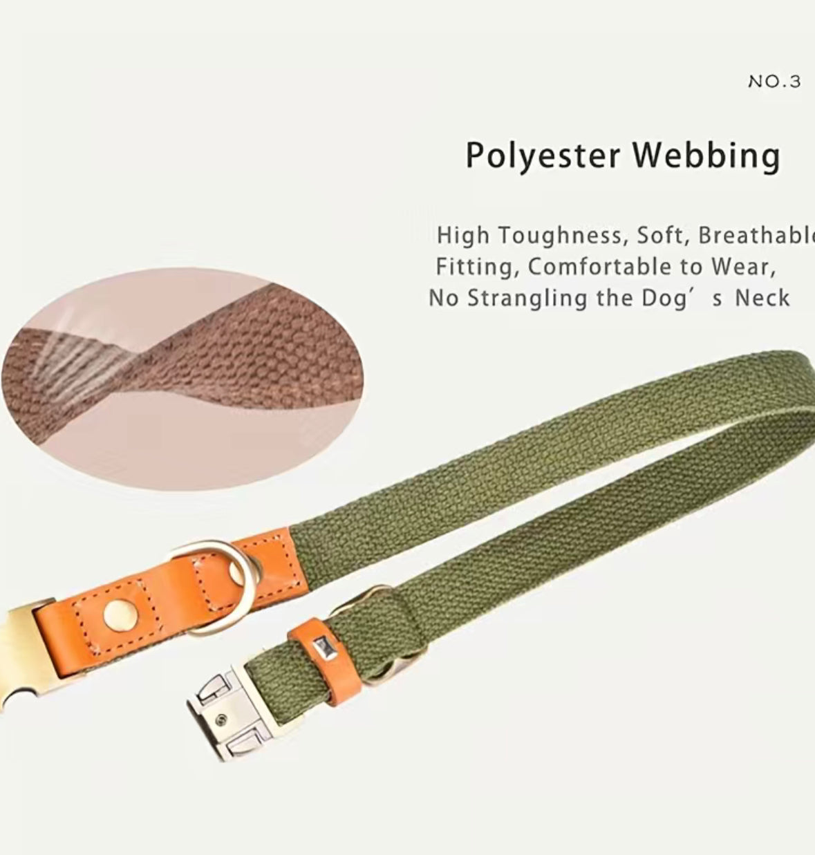 Weiches und strapazierfähiges Hundehalsband mit Lederabschlüssen und Metallverschluss.