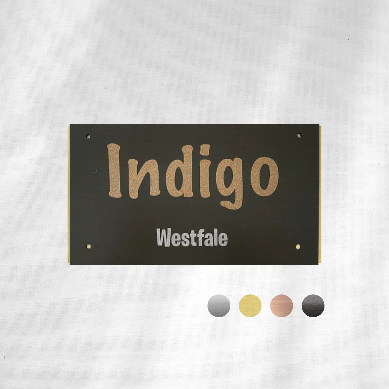 Der Name deines Lieblings und wenn du möchtest auf der unteren Zeile Geburtsdatum oder Zucht wird auf dein Schild mit entsprechender Folie aufgebracht. Ausserdem befindet sich eine Lochbohrung links und rechts.