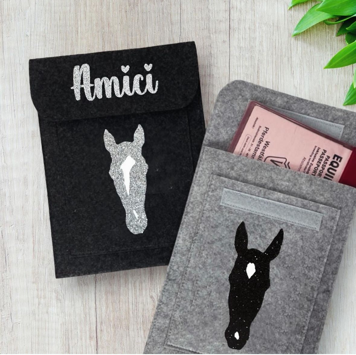 Die personalisierte Passhülle ist ein wunderschöner Eyecatcher beim Tierarzt, Zoll und auf dem Turnierplatz.