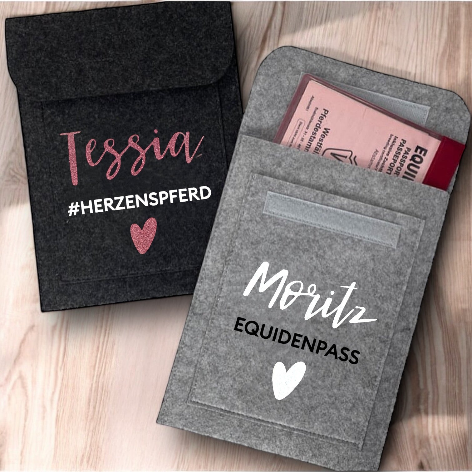 Die personalisierte Passhülle ist ein wunderschöner Eyecatcher beim Tierarzt, Zoll und auf dem Turnierplatz.
