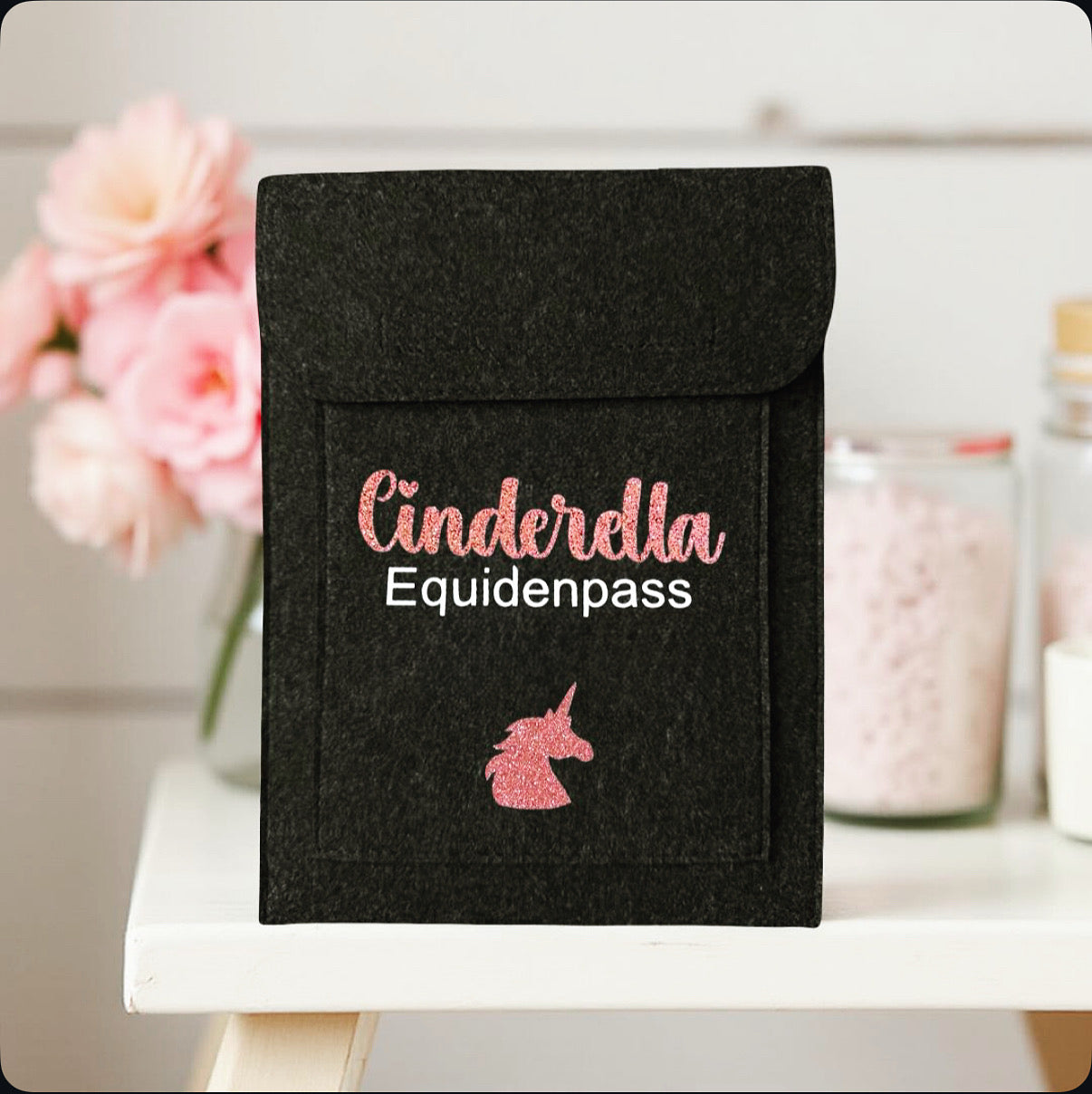 Die personalisierte Passhülle ist ein wunderschöner Eyecatcher beim Tierarzt, Zoll und auf dem Turnierplatz.