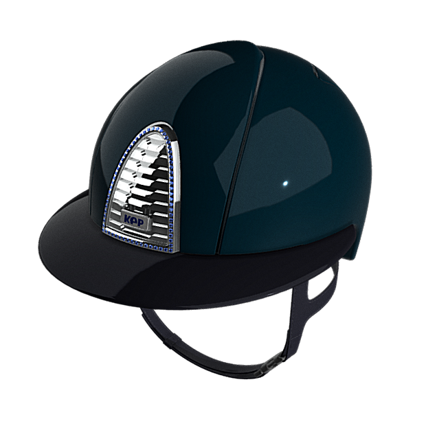 Der Reithelm Cromo 2.0 Shine von KEP ist die Weiterentwicklung des KEP Reithelm Modells Cromo und besitzt eine glänzende Oberfläche. Das Besondere an dem Modell Cromo 2.0 ist die Austauschbarkeit der Panels sowie des Visiers dank eines innovativen Stecksystems. So kann der Reithelm in wenigen Schritten sowohl optisch als auch funktionell an die eigenen Bedürfnisse angepasst werden. Beispielsweise ist mit dem Austausch des Visiers ein disziplinübergreifender Einsatz möglich. Für optimierte Sicherheit befindet sich unterhalb des vorderen Panels ein Chip mit integrierter NFC-Technologie. Dieser Chip kann mit der KEP-App verknüpft werden und ermöglicht so die Hinterlegung von gesundheitsrelevanten Daten, um bei Bedarf schnell auf diese Daten zugreifen zu können und Erste-Hilfe-Maßnahmen zu leisten. Der Helm zeichnet sich durch ein verbessertes Belüftungssystem des Helminneren aus und garantiert so eine maximale Luftzirkulation, die individuell eingestellt werden kann. Der verstellbare und von Hand genähte Kinnriemen ist aus Leder gefertigt und verspricht durch das 5-Punkt-Systems einen komfortablen und sicheren Sitz. Der Helm ist nach den Sicherheitsstandards VG1 01.040 2014-12 sowie ASTM F1163-15 zertifiziert.