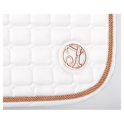 Schabracke aus edlem High-Density Twill-Material. Mit Kordel und Glitzerbindung. Mit Gurtschlaufe und Klettverschluss an den Sattelschlaufen.