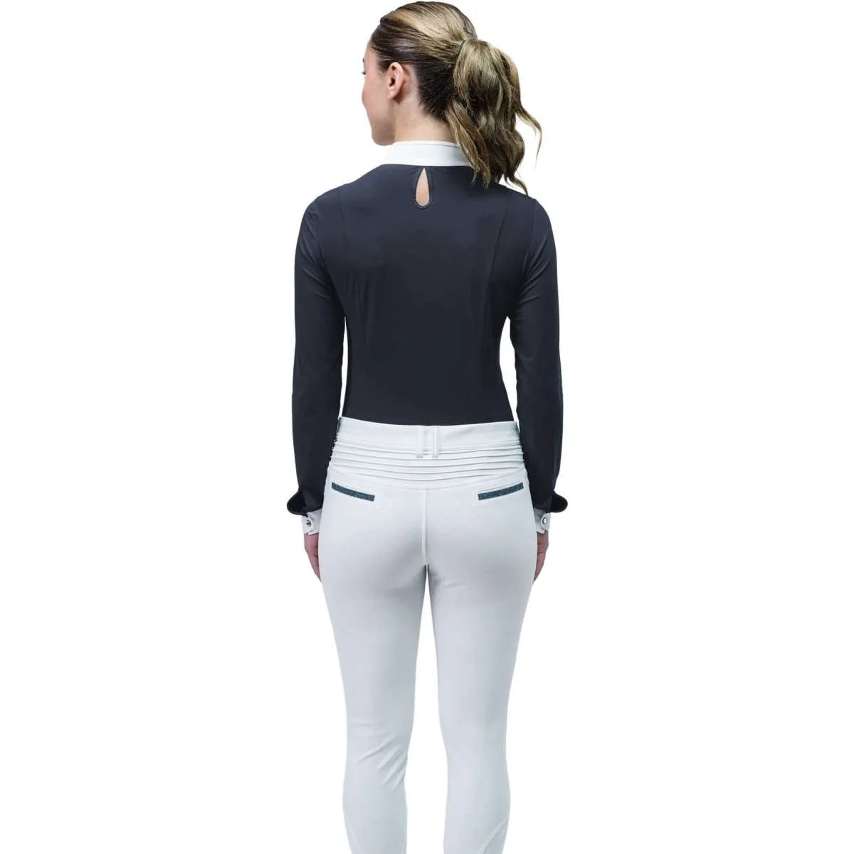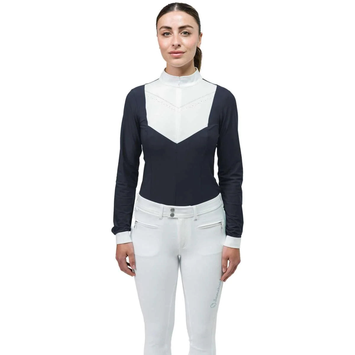 Damen Turniershirt Scarlett in navy mit Glitzerapplikationen und Reißverschluß