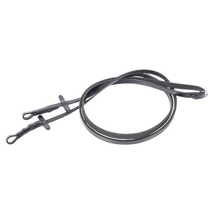 Zügel, Leder (Außenseite) und Antirutsch-Gummi (Innenseite).