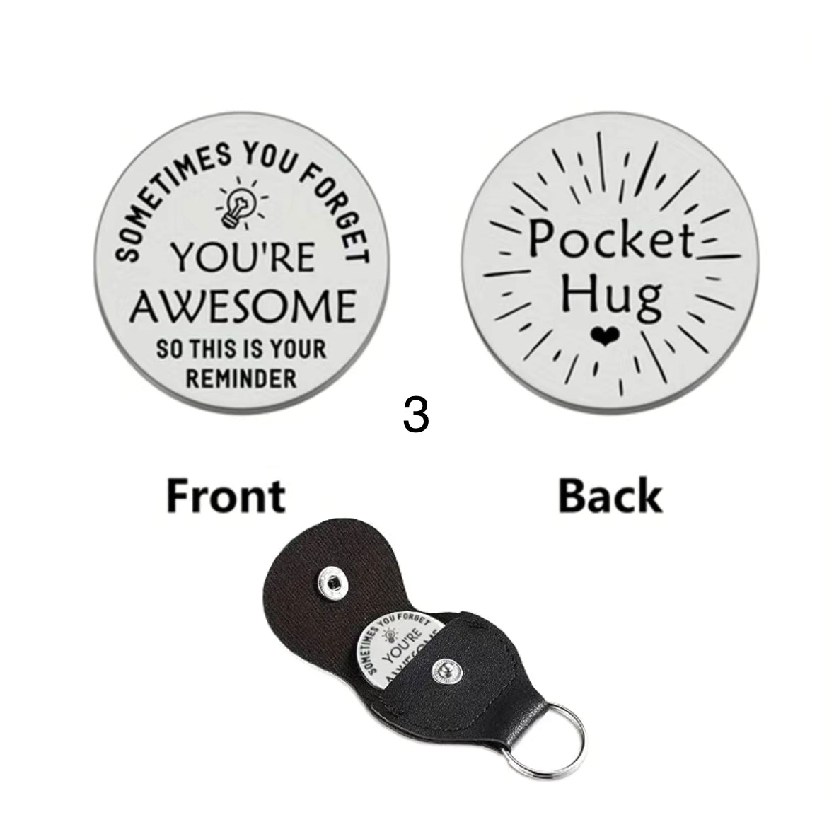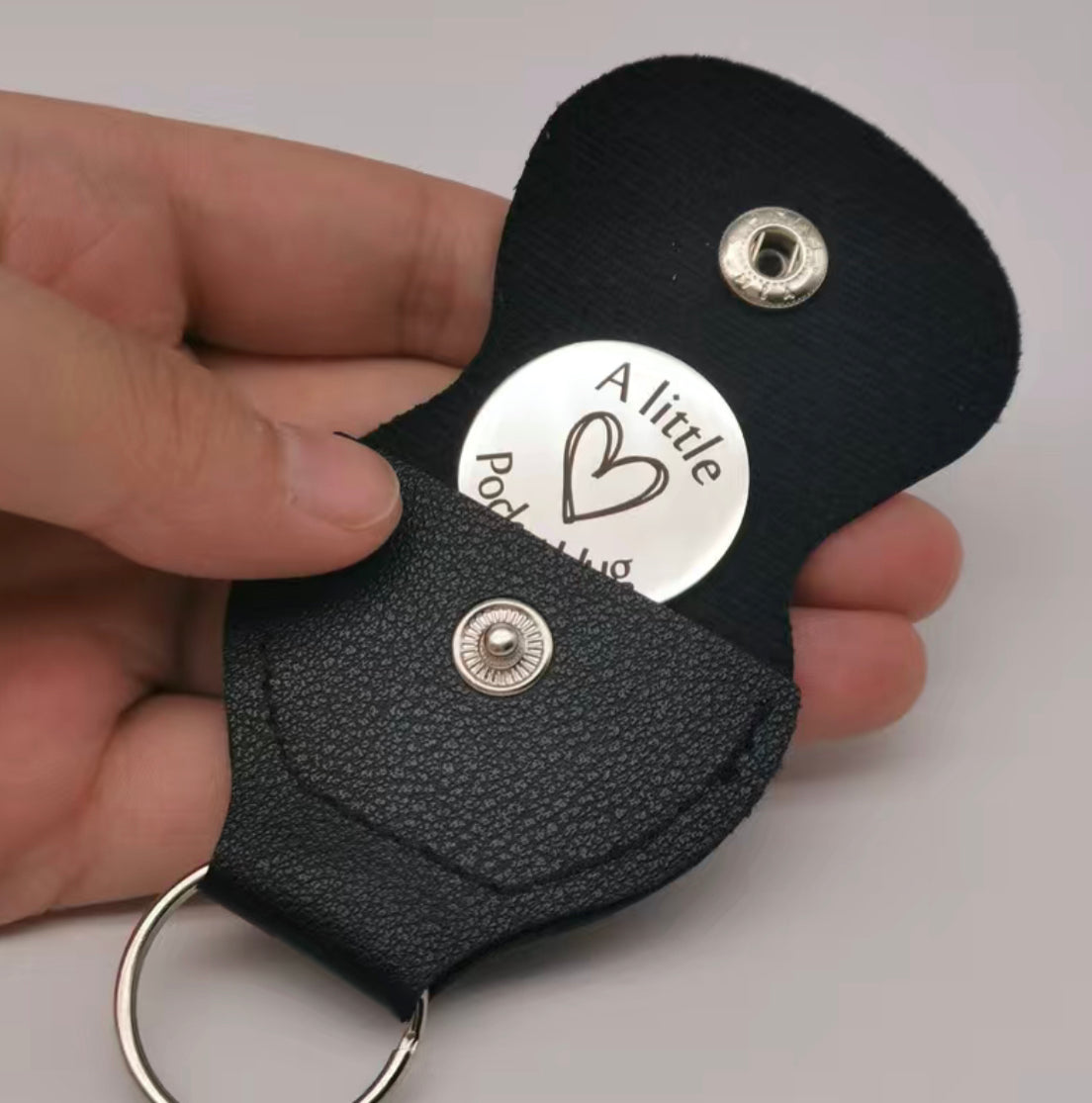 Verschenke mit dieser Edelstahlmarke in einem praktischen Ledertäschchen eine Umarmung, die man immer am Schlüsselbund mit sich trägt