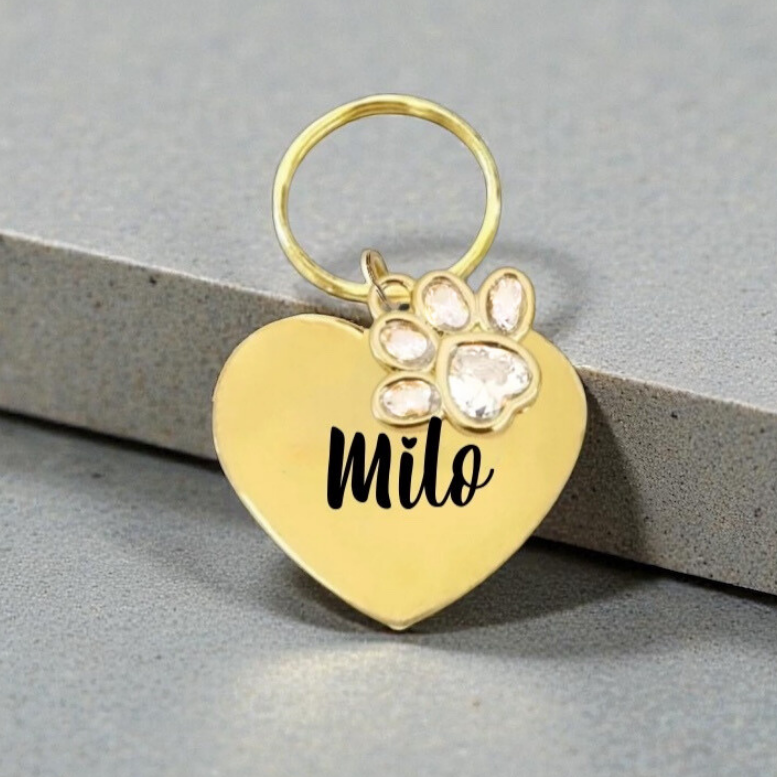 Individuell gravierte Edelstahl-Marke „Herz mit Glitzerpfote“ ✨🐾