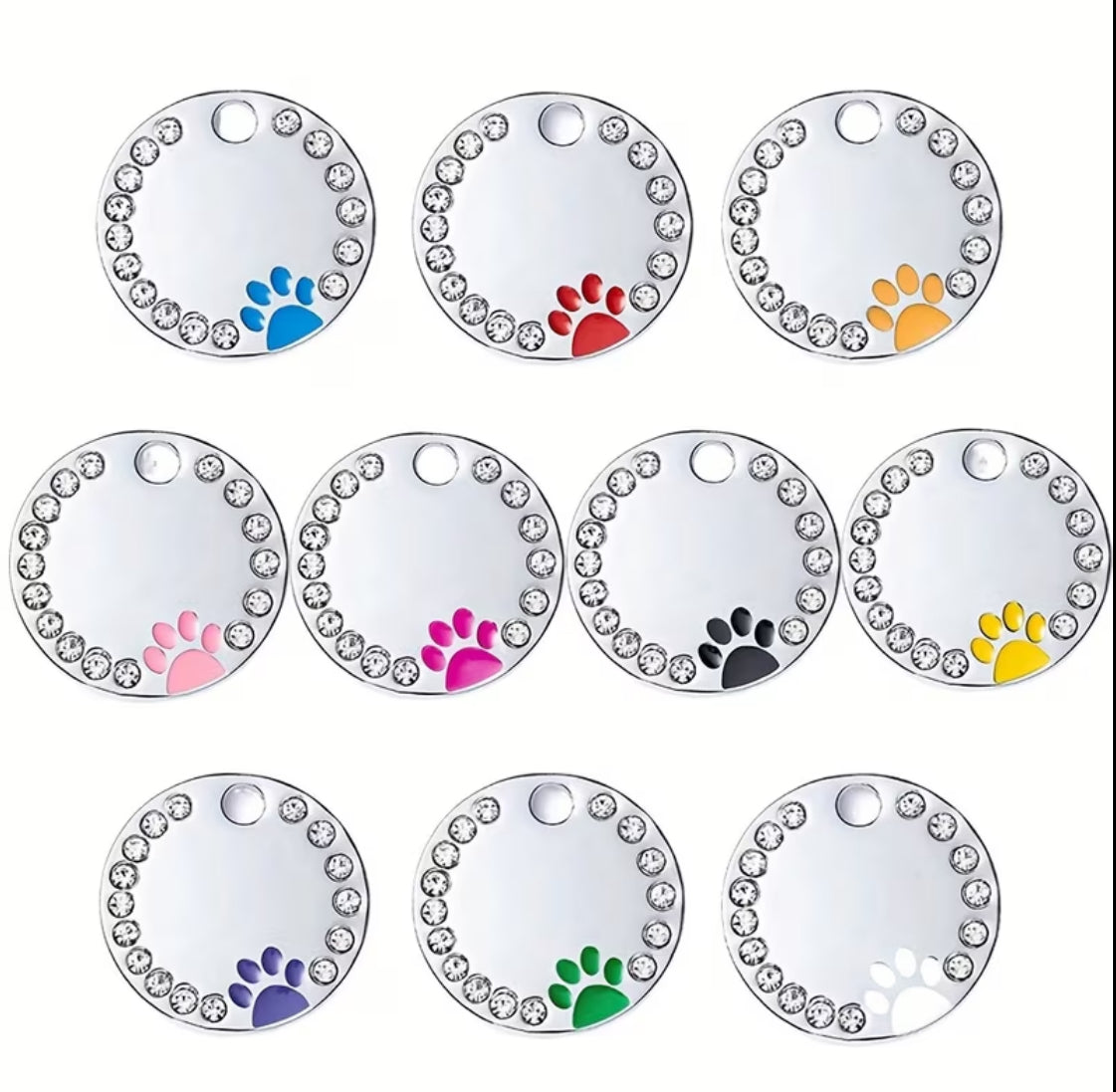 Diese moderne Marke aus glänzendem Edelstahl mit funkelnden Steinen und Pfote ist ein echter Hingucker am Halsband oder an der Leine deines Lieblings.