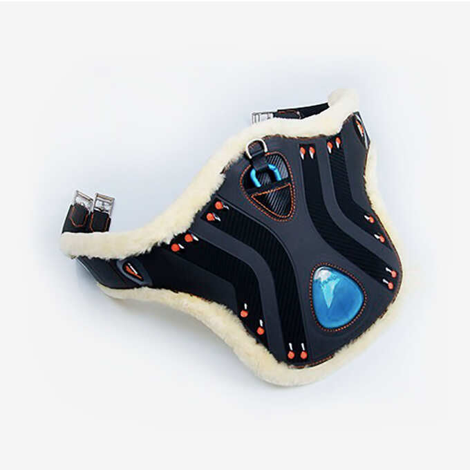 Der “eDiamond Lammfell“ Stollengurt schützt das Pferd nicht nur vor Stollenschlägen gegen den Bauch, sondern sieht auch wunderschön aus und ist sehr bequem. Das technische Material ist sehr leicht und extrem flexibel, so ist ein angenehmer Tragekomfort garantiert. Der speziell geformte Gurt hat einen D-Ring, an dem man Martingal oder Vorderzeug befestigen kann und Rollschnallen aus Edelstahl, welche rostfrei sind und zur Befestigung an dem Sattel dienen. Auf der Unterseite befindet sich künstliches Schaffell, welches langlebig und 100% tierfreundlich ist. Am Rand geht das Schaffell bis auf die Oberseite und verleiht dort dem Gurt ein edles Aussehen! Ebenso wird durch das Schaffell eine hervorragende Passform gewährleistet, welche durch dreifache Elastikeinsätze an beiden Enden unterstützt wird. Ein wunderschöner Sattelgurt, welcher der perfekte Begleiter auf Turnieren ist.