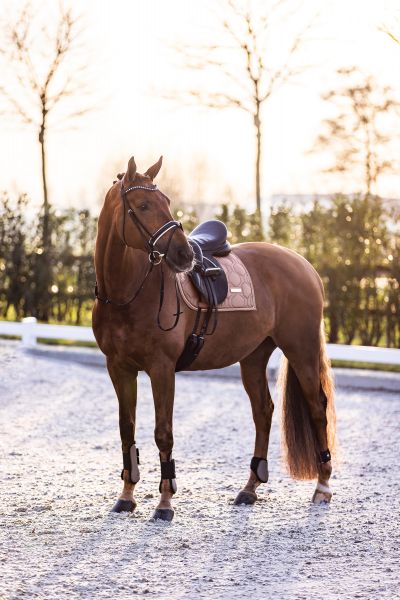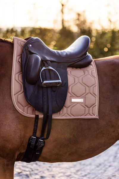 Gesteppte Satteldecke in unserem „Lovely“-Stil mit Perlenpaspel auf der Rückseite * Rechteckige Form* Metallschild auf der linken Seite kann graviert werden * Mesh-Linie auf der Rückseite für bessere Belüftung * Riemen zum Halten der Satteldecke mit Klettverschluss zum einfachen Öffnen und Schließen