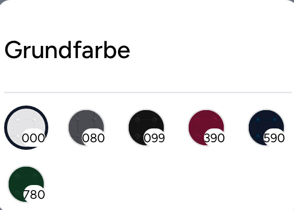 Erhältlich in den Grundfarben: White, Anthracite, Bordeaux, Navy, Bottle Green und Black.