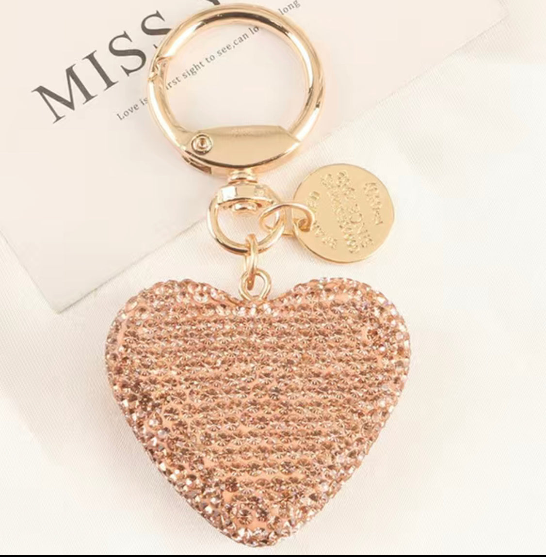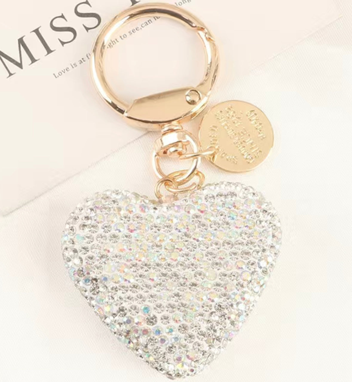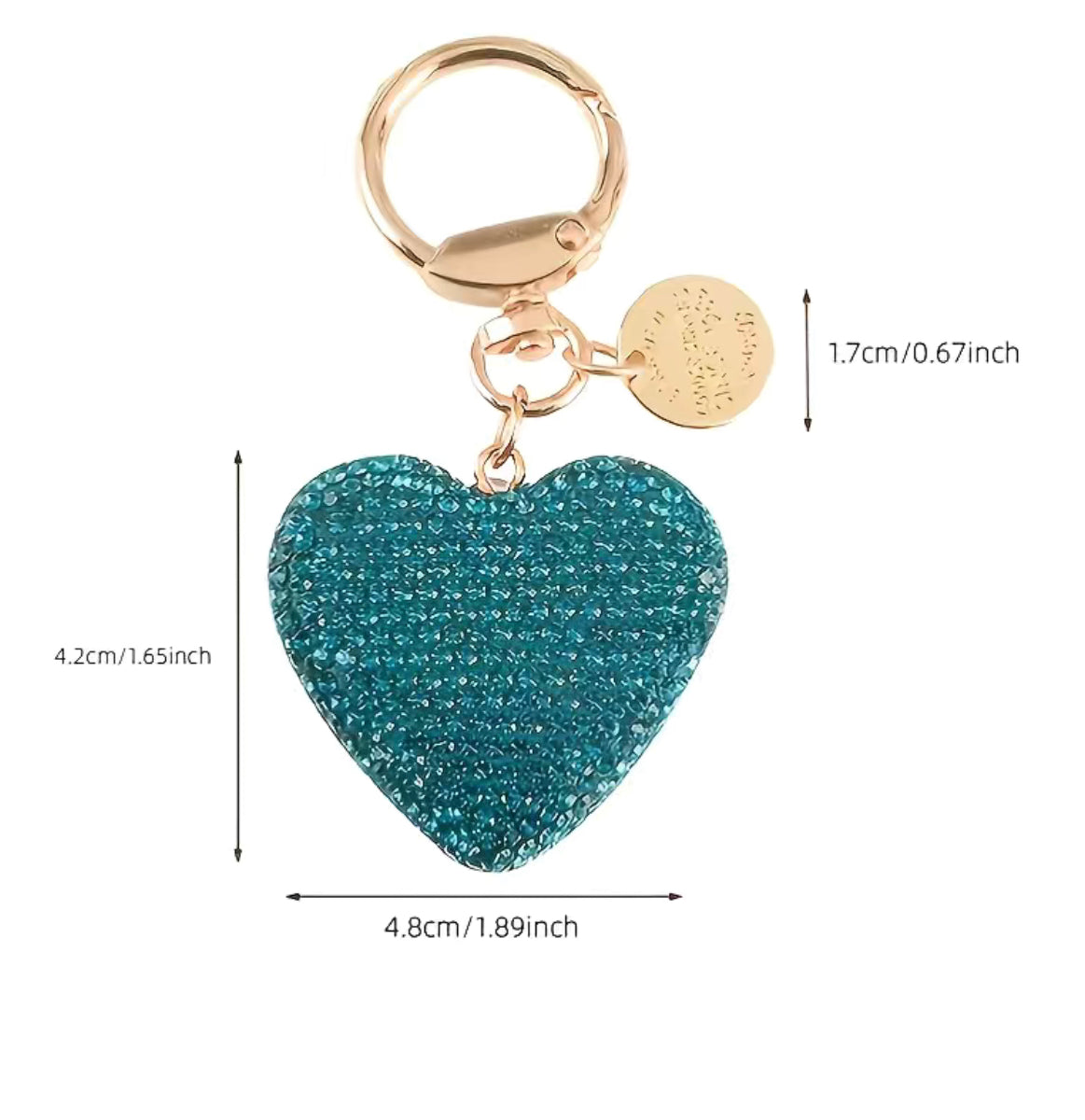 Funkelnder Herz-Schlüsselanhänger mit goldenen Schlüsselring und Charm.