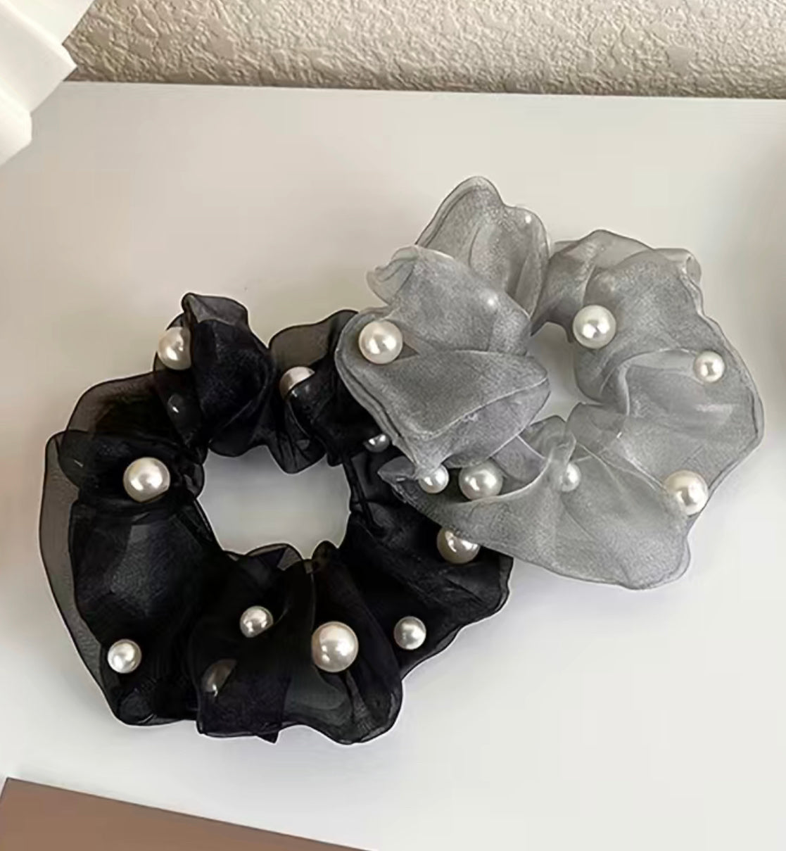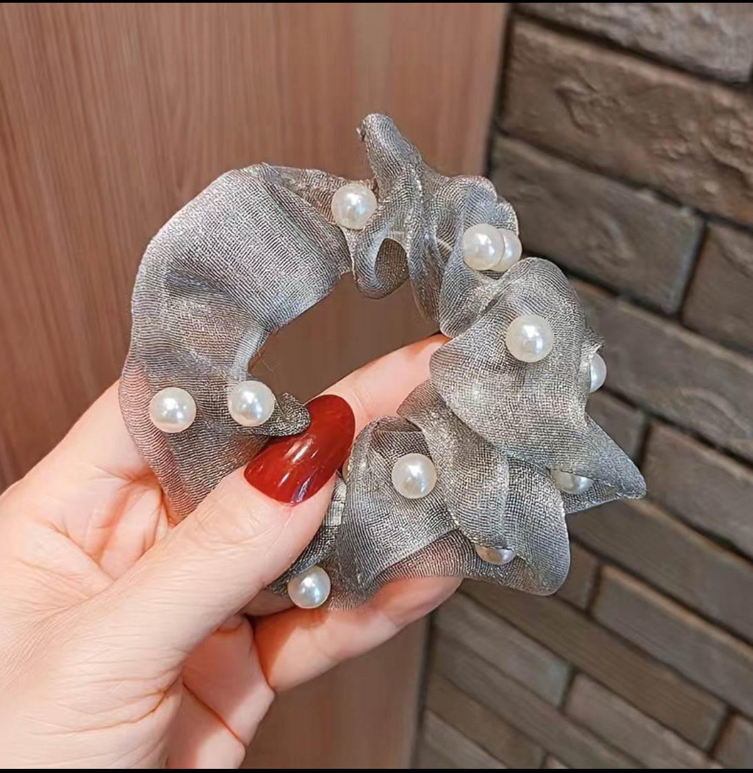 2er Set Haarband aus luftigem Tüll mit kleinen Perlen verziert. Perfektes Dutthaarband um deinem Dutt mehr Halt und Fülle zu geben