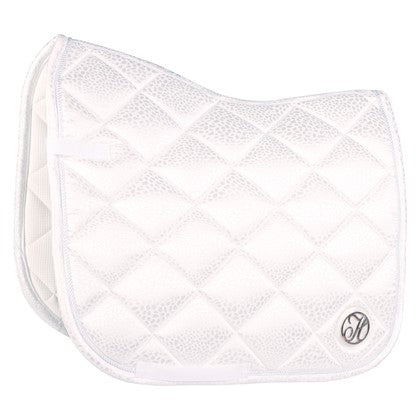 Schabracke mit schickem Ton-Ton-Leopardenmuster. Ausgestattet mit einer dekorativen Kordel und metallischen Paspeln. Ausgestattet mit einer Gurtschlaufe und Klettverschluss an den Sattelschlaufen.