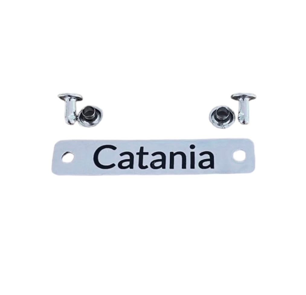 Namensplättchen aus Edelstahl – individuell graviert