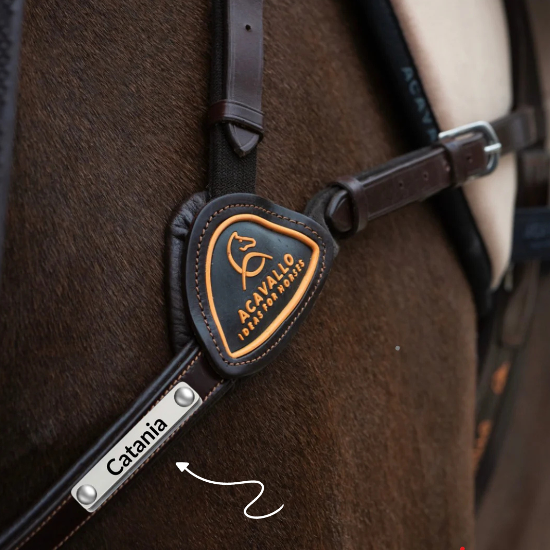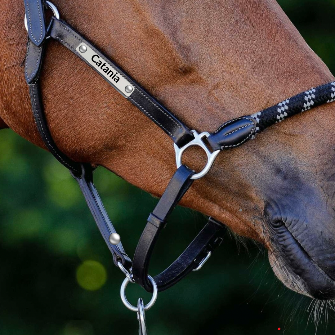 Das elegante Plättchen wird mit modernster Lasertechnik graviert und macht dein Vorderzeug, Martingal, Halfter oder Hundehalsband unverwechselbar.