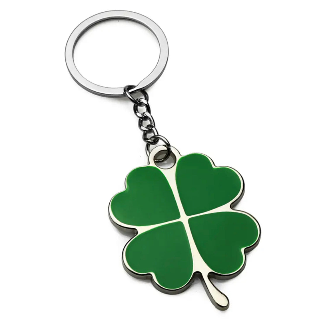 Schlüsselanhänger mit vierblättrigen Kleeblatt.