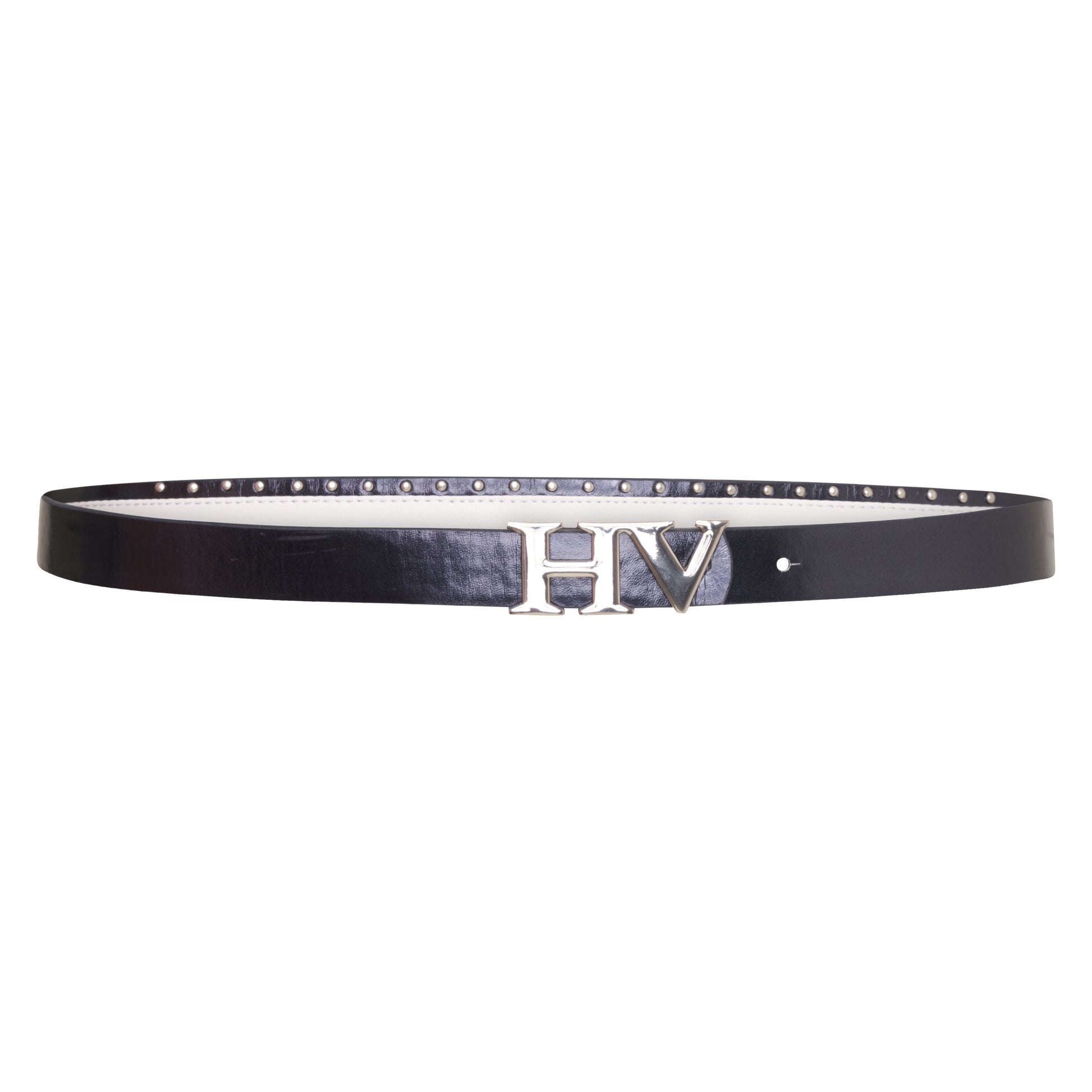 Glänzender, wendbarer Gürtel. Dieser modische Gürtel ist aus PU-Leder gefertigt. Die schicke Gürtelschnalle aus Metall mit HV-Logo ist ein stilvolles Detail. Perfekt zum Abrunden eines stilvollen und sportlichen Frühlings-Looks. Seite A einfarbig glänzend. Seite B mit klassischen Streifen mit Silbernieten.