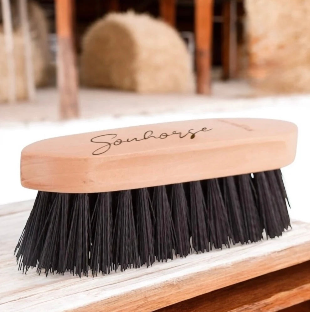 Mittelgrosse Wurzelbürste mit deinem Wunschnamen auf dem Holzrücken eingraviert