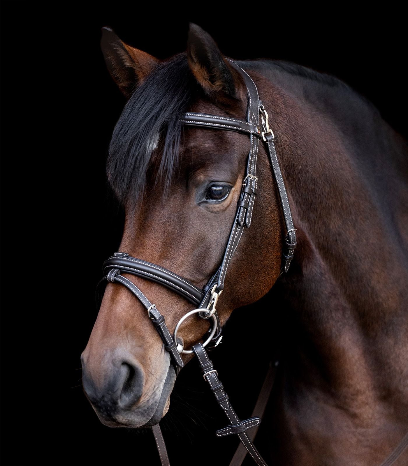 - Nasenriemen, Stirnband und Genickstück weich unterlegt